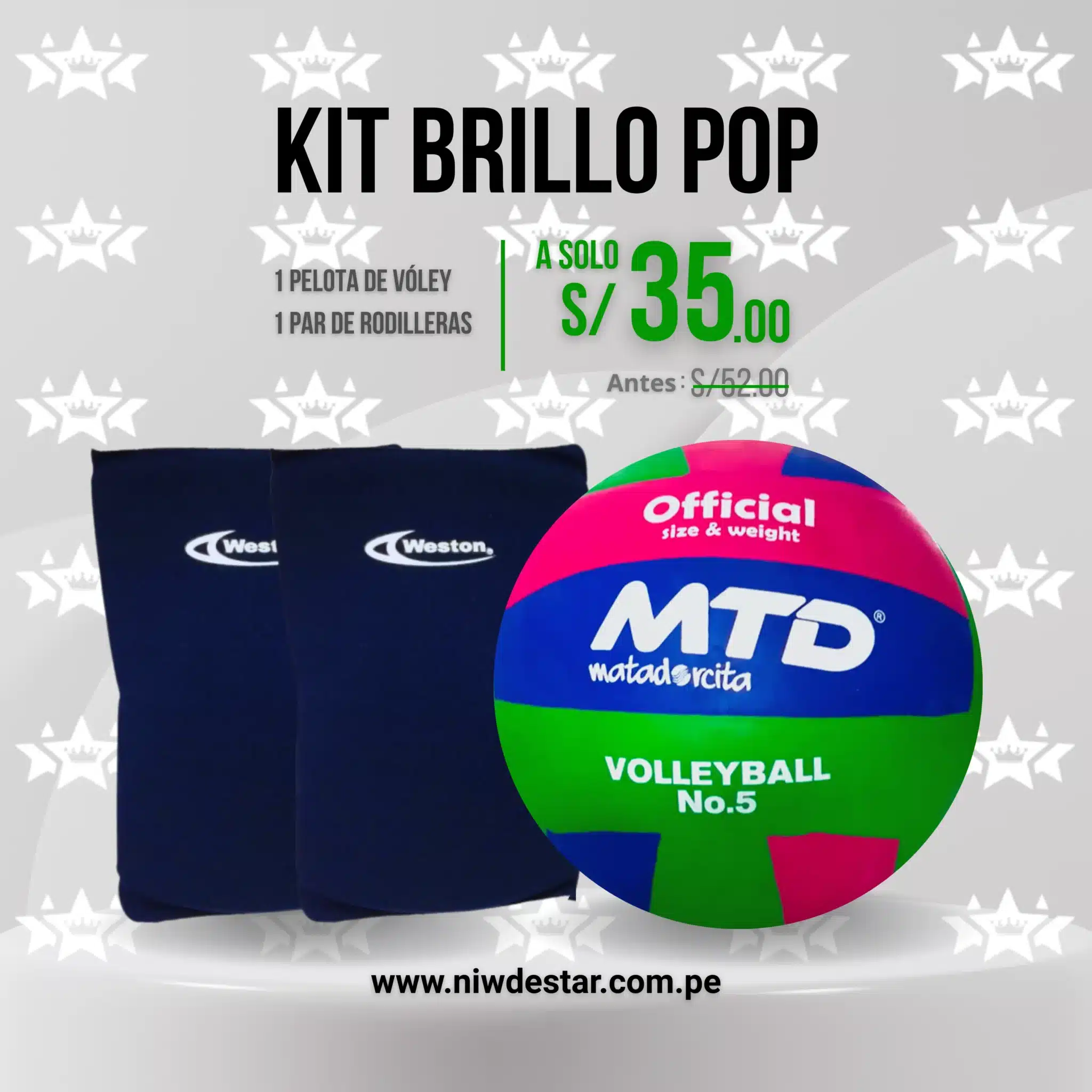 🔥 No dejes pasar este descuentazo exclusivo que solo encuentras en Niwde Star 🏐✨ Llévate tu Kit Brillo Pop – MTD y disfruta de calidad, protección y diversión al mejor precio.📦 Cómpralo ahora en nuestra web o págalo fácil por Yape, Plin o transferencia escribiendo al 946106332. ⚡¡Oferta por tiempo limitado, juega y brilla en la cancha! 😍
